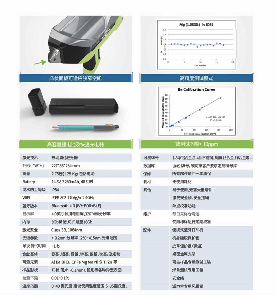 6、便攜式分析儀:便攜式LIBS分析儀適用于金屬及其牌號的識別、巖石種類鑒別等多種應(yīng)用領(lǐng)域,具有高激光功率,適用于更廣泛的分析樣品。